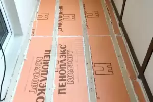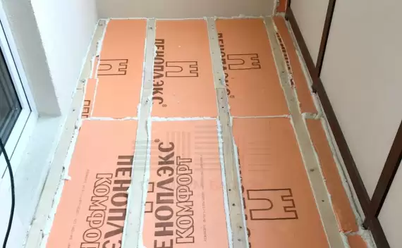 В качестве теплоизоляционного материала для пола используют пеноплекс, минеральную вату, пенофол с фольгированным слоем или комплекс данных утеплителей. При использовании в качестве утепления мин-плит важно провести более тщательную герметизацию щелей и гидроизоляцию балкона.