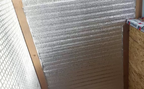 Утеплитель Изоком относится к фольгированным материалам с основой из вспененного полиэтилена. Благодаря этому фольгированному слою Изоком отлично сохраняет тепло, так как он действует по принципу термоса. Фольгированный слой может наноситься на одну или обе стороны основы. Толщина утеплителя совсем небольшая, поэтому данный материал совсем не уменьшает площадь балкона. Изоком можно использовать отдельно или в сочетании с другими утеплителями.